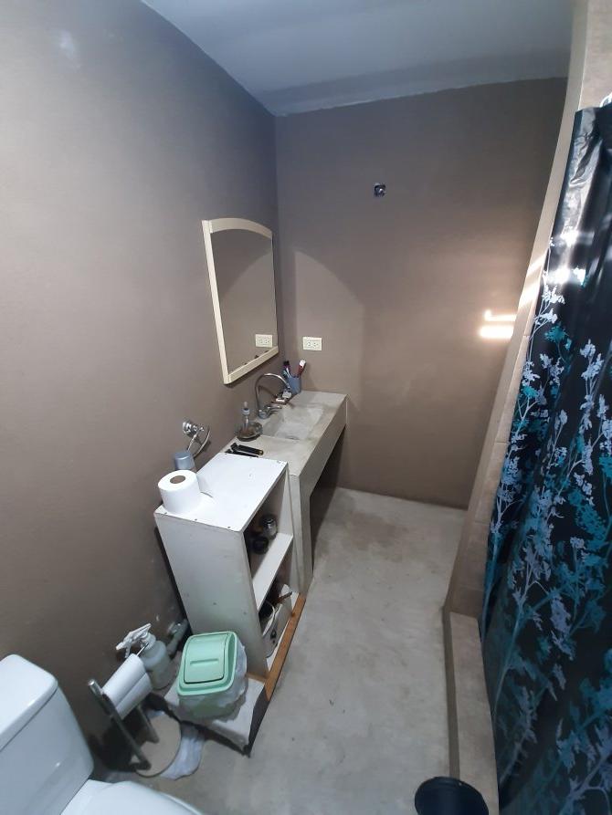Planta baja con recibidor, un pequeño cuarto (que puede utilizarse como deposito), una habitación en la parte posterior y una habitación con baño en suite y vestidor (el cual puede utilizarse como otra habitación); escalera de madera;